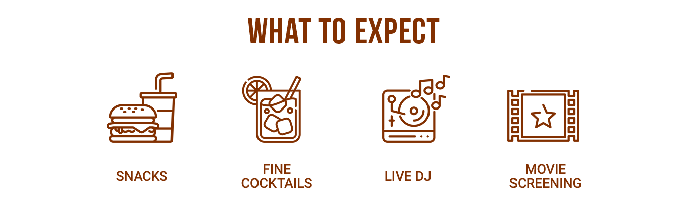 We've carefully curated an atmosphere where you can unwind, savor cocktails and snacks, and connect with fellow movie lovers during the pre-show, all to the sound of our host DJ.